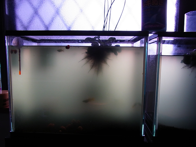 コチラの水槽は室内にメダカを移すのが更に遅かったので