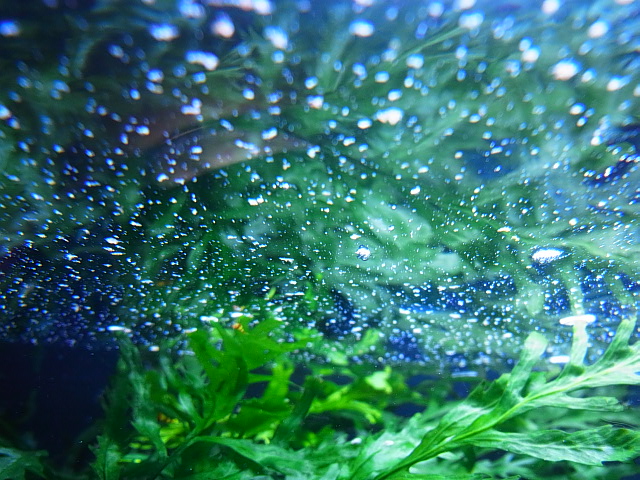 比重が軽いので水流の無い水槽だと中々沈むことが無いと思います